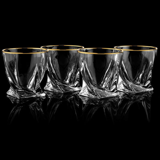 Gold-Rimmed Twisted Whiskey Glasses Set of 4