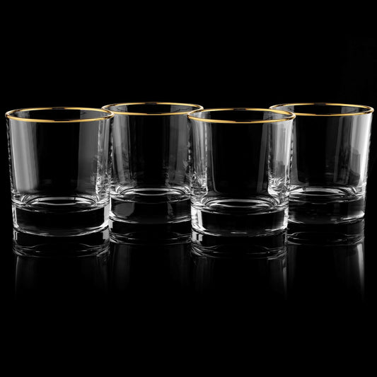 Gold-Rimmed Whiskey Tumblers Set of 4